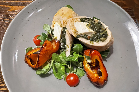 Gegrillte Hähnchenbrust gefüllt mit Feta und Spinat 150 g