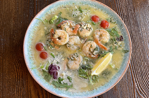 Garnelen serviert mit einer Wein-Knoblauchsauce 8 st.