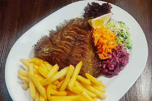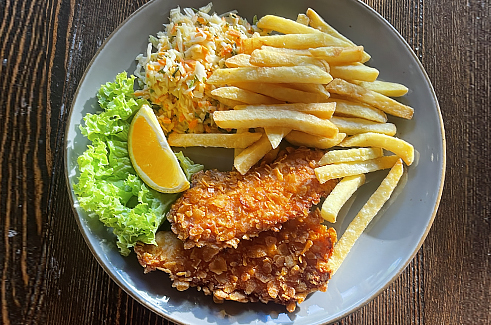 Hanchen-Nuggets mit Pommes und Karottensalat 120 g