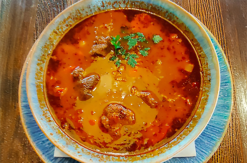 Kartoffelpuffer auf ungarischer Art mit Rindfleisch