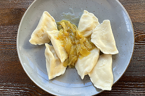 Piroggen mit Kartoffel-Käse-Füllung und Zwiebeln