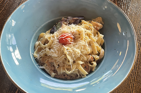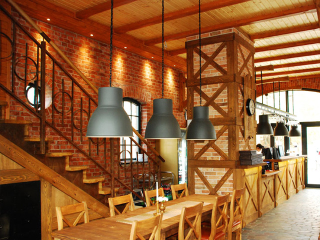 Die Innenräume des Restaurants sind gemütlich, hier dominieren alte, rote Backsteine mit natürlichen Holzelementen, die in einem perfekten Einklang mit dem alten Gebäude stehen.